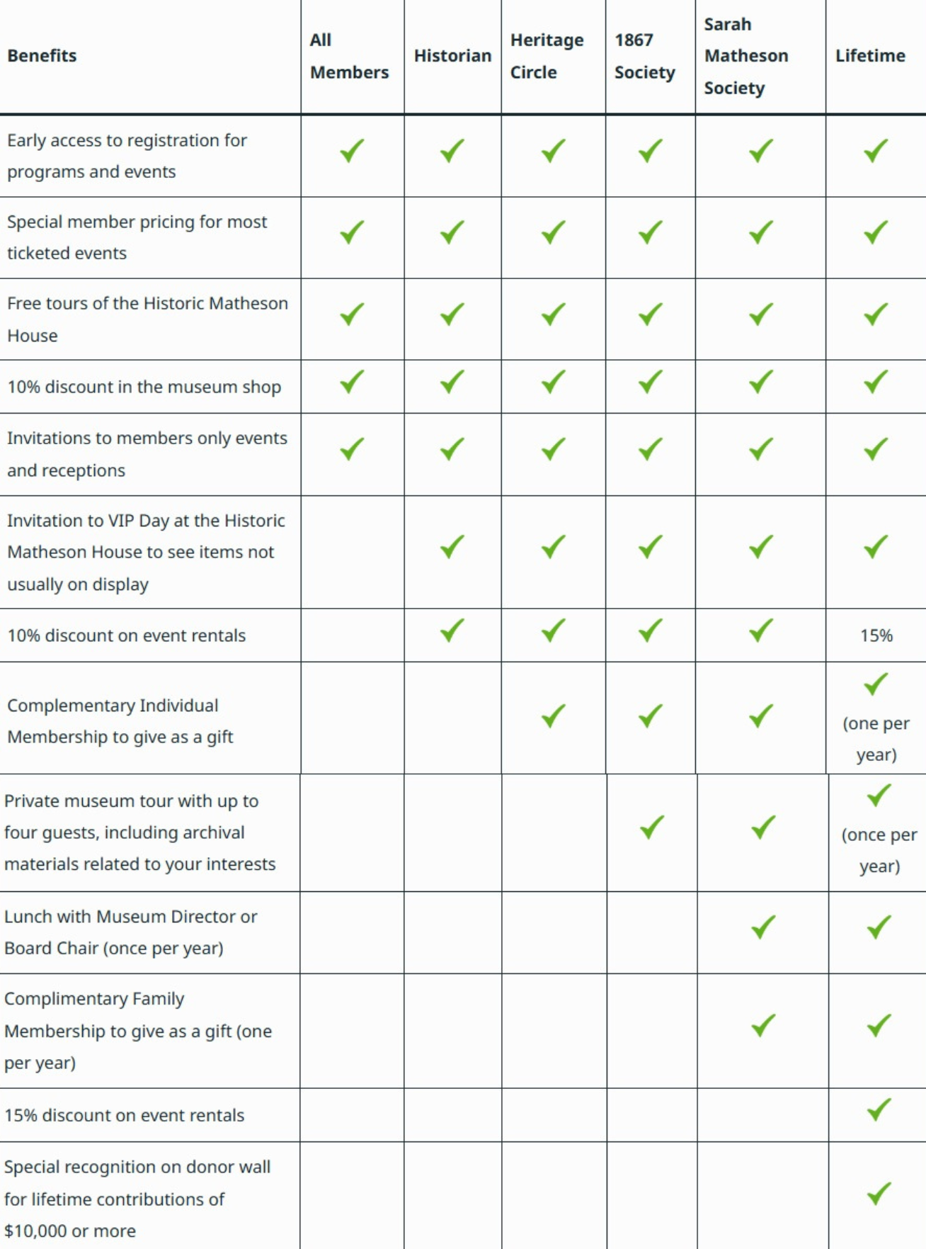 Annual Membership: Please see the chart below or on our website at https://mathesonmuseum.org/membership/.